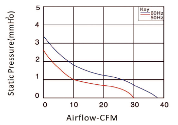 (Hz) | (VAC) | (A) | (W) | (CFM) | (mmH2O) | (dBA) | (RPM) | ||